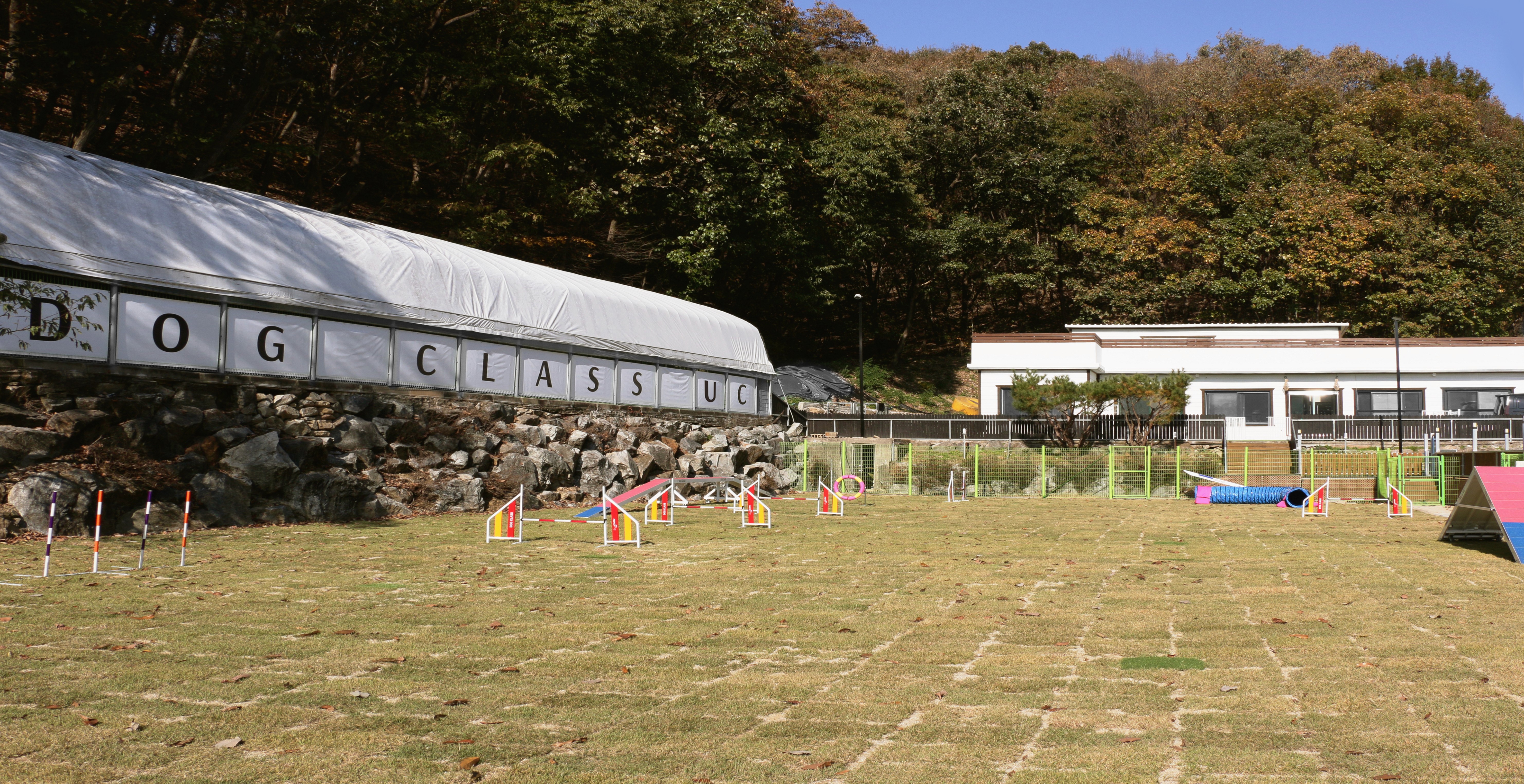 넓은 천연잔디 야외 공간과 반려견 크기에 맞게 나눠진 프리사이즈독 오프리쉬와 스몰독 오프리쉬존이 있는 유사리 캠퍼스입니다. 어질리티, IGP 클럽, 오비디언스 클럽 활동이 주로 진행되는 곳입니다.
